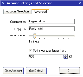 You can specify your Organization and Reply-To address, or leave these fields empty. You are also given an option to set your news server timeout - this