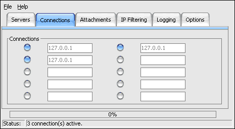ContentsQuickstartTroubleshooting About Features Requirements Credits and Acknowledgments ManualMain MenuIndicators Servers Tab Connections Tab Attachments Tab IP Filtering Tab Logging Tab Options Tab Registration & Ordering |
